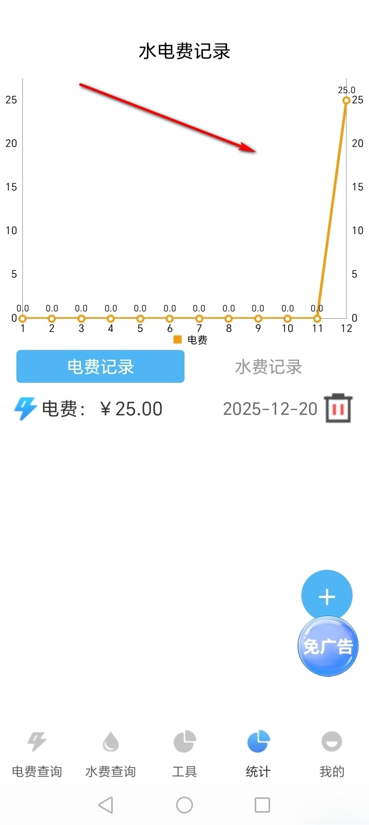 2、水电统计:利用图表帮助用户完成全年水电月度统计效果。