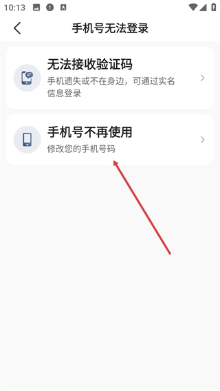 2、进入手机号无法登录页面,可选择【无法接收验证码】或【手机号不再使用】选项,对应解决登录问题的不同场景。