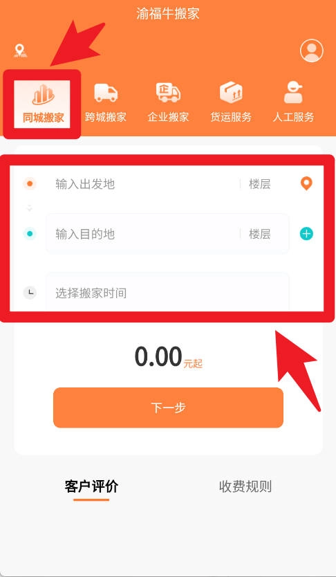 2. 在同城搬家板块,用户仅需填写出发地、目的地与搬家时间,就能一键下单,便捷预约周边的搬家服务。