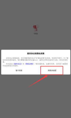 1、点击同意并接受按钮,确认服务协议。