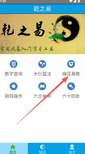 1、点击进入软件,选择首页梅花易数功能选项。