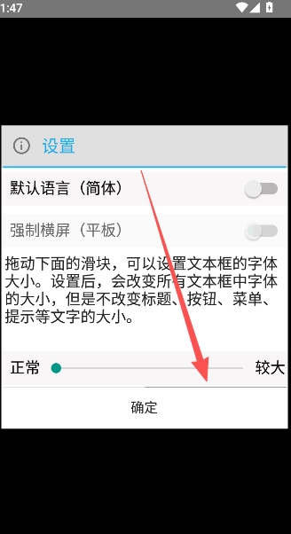 2、在此处拖动字体大小的进度条,即可完成字号设置的修改操作。