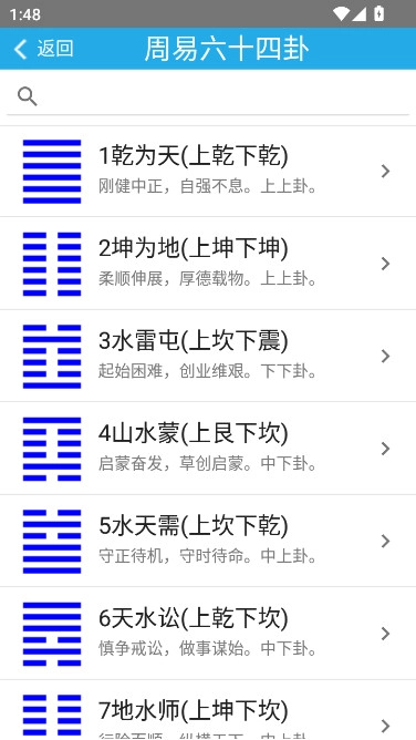 六十四卦深度解读:每一卦都配有详尽解析、对应类象及实用应用场景,还能实现快速查询与多卦对比,助力学习效率大幅提升七成。