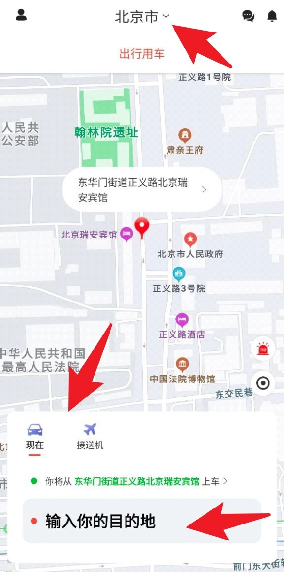 2. 登录成功后,首页地图会显示出你当前所在的位置,点击输入框并填写目的地信息,系统便会自动规划出相应的出行路线。