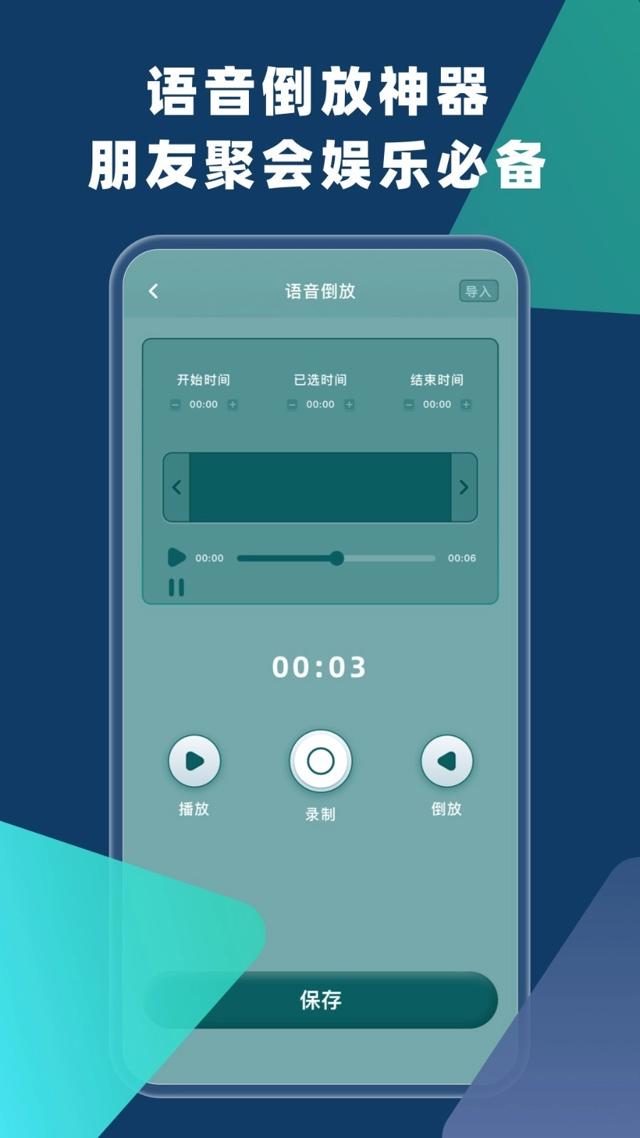 语音倒放是一款拥有创意编辑功能的智能语音处理软件。它能轻松实现声音的倒放效果,把普通录音变成富有新意的听觉内容。软件还为用户提供多种音效素材和频道处理工具,支持快速编辑音频文件,助力用户创作出独特的声音作品。其功能设计兼具娱乐趣味与实用价值,无论是日常娱乐互动还是辅助音乐创作,都能提供相应的技术支持。