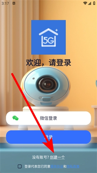 1、在5G看家的登录界面,点击“创建一个”选项,即可进入新账户注册页面。