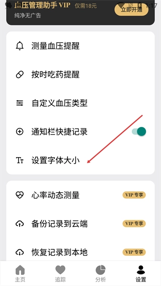 2、在【设置】页面的功能列表里,找到【设置字体大小】这一选项并点击它。