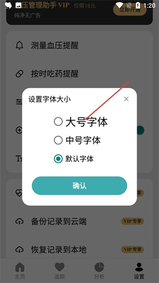 3、选择目标字体类型(如大号字体),之后点击【确认】按钮提交设置。