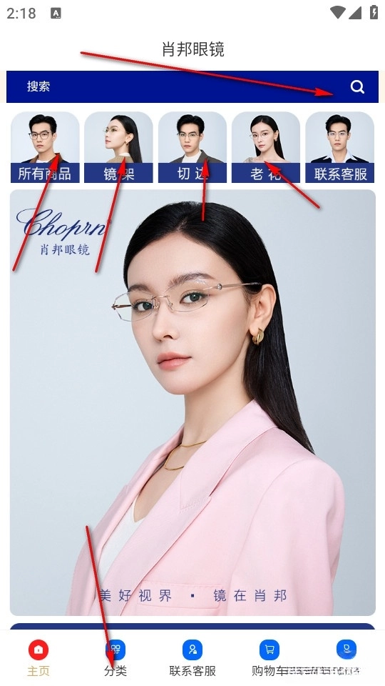 我们点击软件进入主页,寻找自己需要采购的眼镜产品。