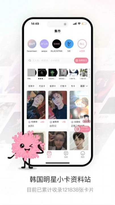 1.全面的明星小卡资源:珊瑚集市收录了海量的韩国明星小卡,几乎覆盖了所有热门的kpop艺人,为用户提供了丰富的选择。