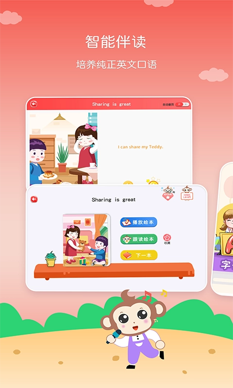3.智能伴读服务:通过智能评分,培养孩子纯正英文口语。
