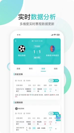 4.数据分析:从进球时间分布、交锋记录、近期战绩等多维度分析赛事,帮助用户深入了解比赛。