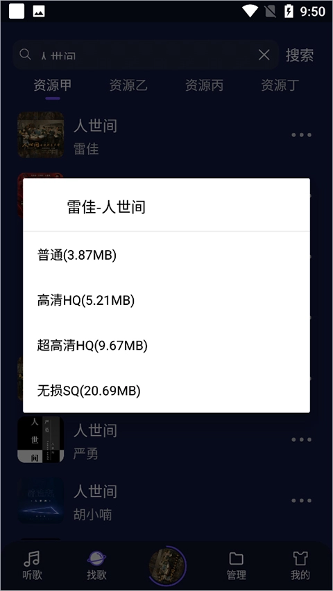 软件中有着各式各样类型的歌曲,可以一键查找,多个搜索引擎为你提供想要的音乐