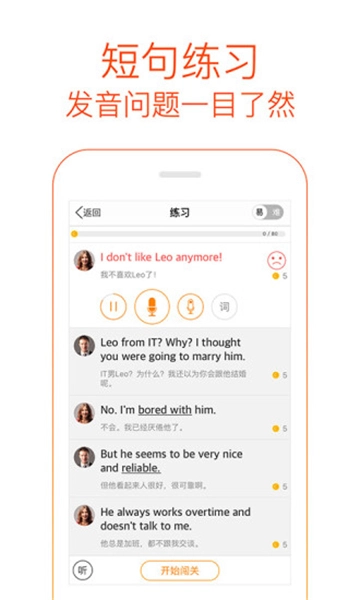 4.智能打分系统:采用智能实时语音评分技术,对用户口语进行逐字逐句打分,帮助用户精准定位错误点。