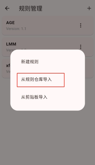 3、在出现的弹窗中选择从规则仓库导入。