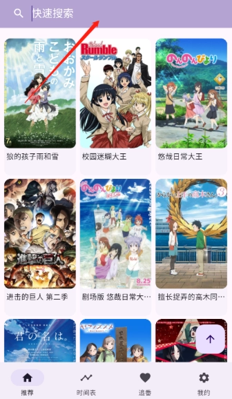2、在“推荐”栏目,用户既能在线查找自己喜爱的动漫资源,也能借助上方的搜索框输入关键词进行查找。