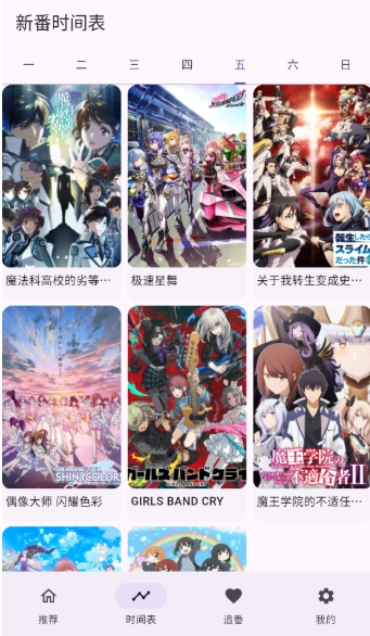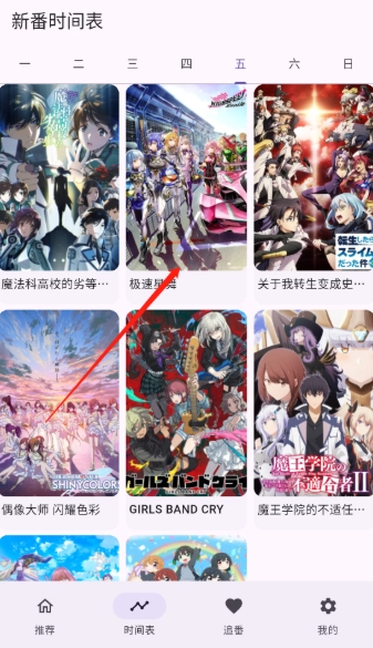 3、“在“时间表”页面,你能查看每日的动漫播放资源,遇到喜欢的内容还可以将其收藏起来。