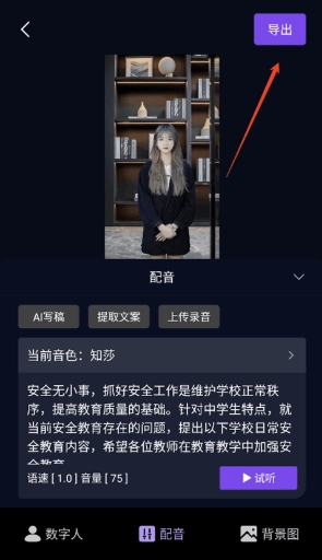 5、所有准备工作完成后,点击右上角的【导出】按钮,就能生成数字人视频了