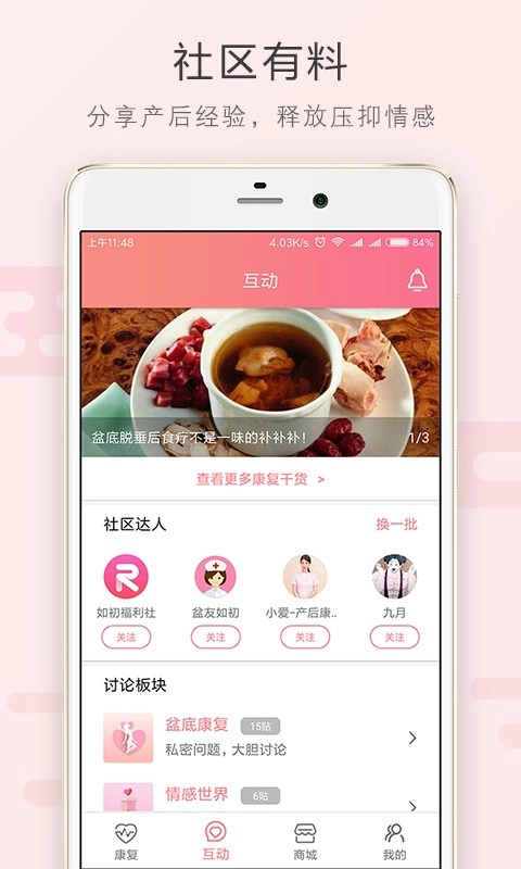 动态训练界面结合语音提示,让原本枯燥的锻炼变得生动有趣;依据个人体质量身定制的康复计划,从零基础到进阶训练都配备了详细指引。商城里的所有产品都附赠专业咨询服务,帮助解决使用过程中遇到的疑问;社区板块对隐私保护严格,妈妈们能够畅聊产后生活的点点滴滴。