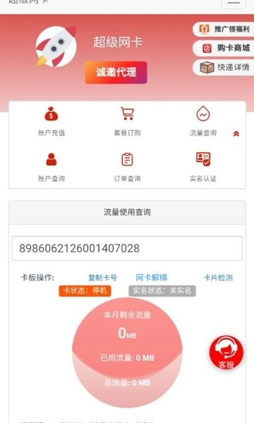 这是一款专门面向网卡用户的管理平台,核心功能涵盖账户充值、套餐办理、流量监控、账户信息查询、订单管理以及实名认证等,旨在助力用户更高效地管理自身的移动网络服务。