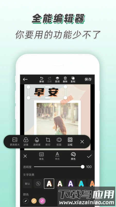 5. 编辑功能十分强大:不仅可以新建画板,还提供了多种花字、特效以及图文组合样式,同时支持添加边框和滤镜。