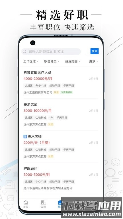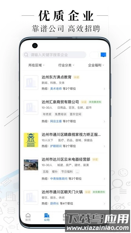 达州直聘作为专注于本地的专业招聘平台,为达州求职者提供优质的本地职位信息,同时助力企业高效完成招聘。我们致力于让每一位用户都能找到合适的工作机会,成为达州人首选的求职好帮手。