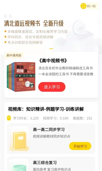 清北道远视频书是面向高中生的在线学习平台,汇聚了海量课程资源与专业教师团队,为学生提供智能化的移动学习服务。平台覆盖高中全学科的知识点讲解视频及习题精讲内容,支持扫码观看纸质教材对应的配套视频,达成线上线下学习的无缝衔接。借助清北学霸的思维引导以及名师的趣味教学方式,助力学生迅速攻克重点难点,能够随时随地弥补知识漏洞;个性化学习轨迹记录功能可清晰呈现知识薄弱环节,结合智能推荐的习题练习,切实提高学习效率。备考阶段想要提升学习效果的同学,不妨来体验一下。