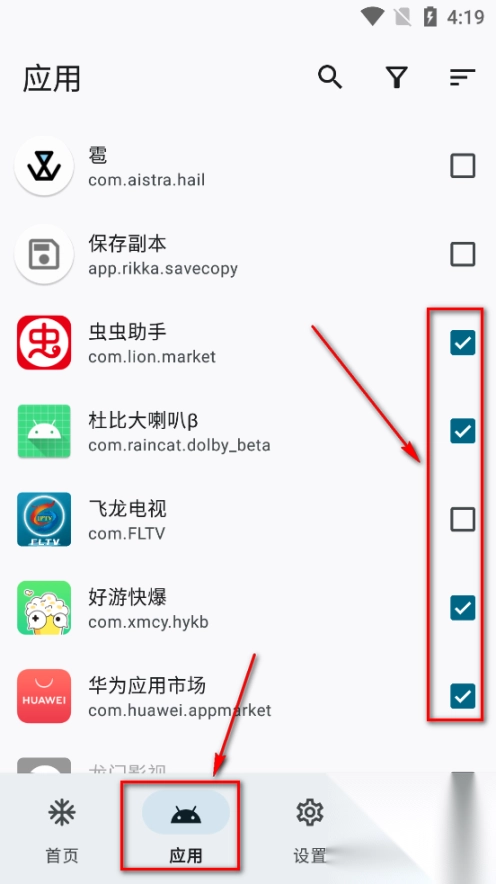 【应用】,选择需要冻结的应用