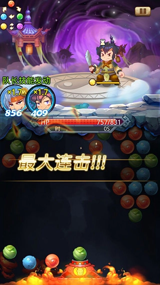 2、通过策略消除彩色泡泡来触发战斗效果,不同的消除组合会使武将做出不同的动作反应;