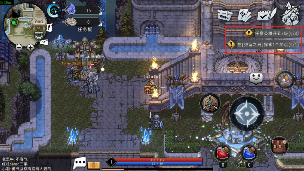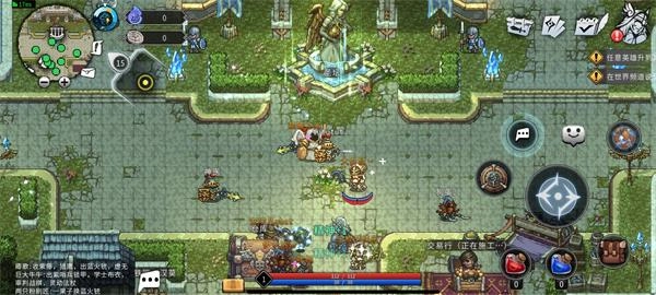 3、左侧区域可操控角色的移动与方向,右侧则分布着攻击、背包等功能按钮。