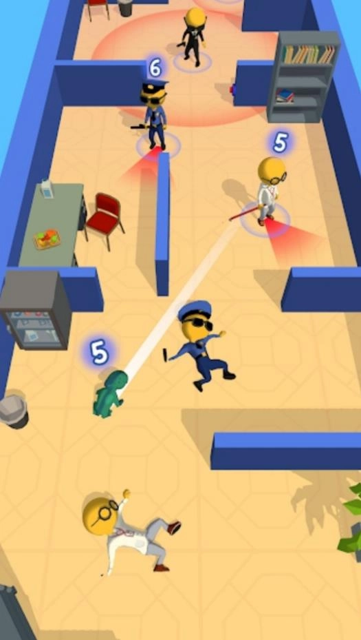 2、当面对保安的雷达探测范围时,需借助场景内的掩体躲在其视觉盲区,静待其巡逻的空隙再展开攻击,以此减少暴露的可能性。
