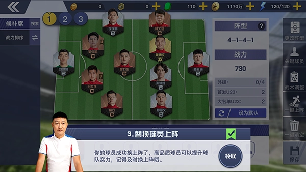 4、在阵容界面我们可以选择想要替换的球员。