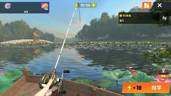 3、进入游戏后,点击右下角的“抛竿”按钮,甩出至关重要的这一竿!