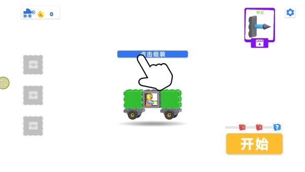1、点击开始游戏后,在屏幕上滑动手指,即可完成车辆的初步组装。