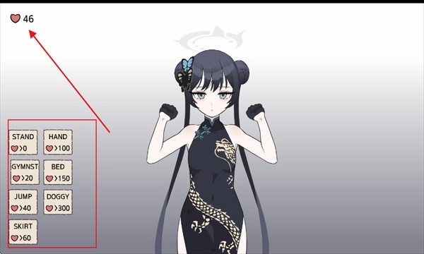 3、当好感度达到对应的程度时,我们就能解锁全新的游戏动作了。