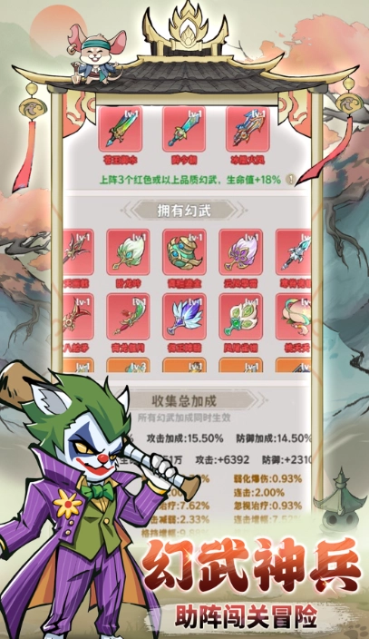 在击败怪物、挑战关卡的过程中,玩家会持续获取各类强力装备,推动战斗力不断提升。除了普通武器能随时获取更换外,游戏还特别设计了珍稀的“幻武神兵”系统——这类拥有特殊效果与成长空间的传奇武器,一旦入手就能大幅增强战斗表现,让冒险体验更加畅快。