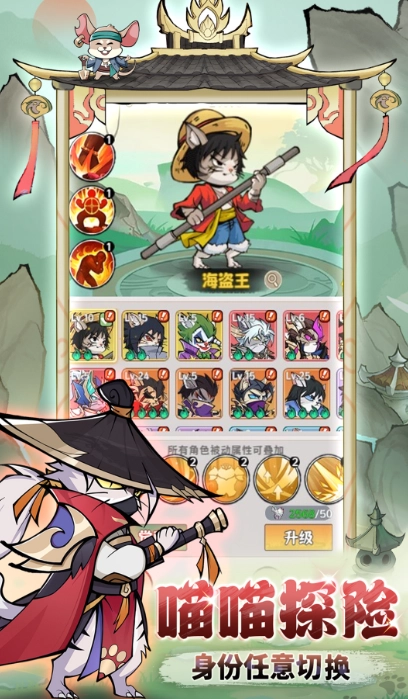 5、点击右侧的角色,在这里可以查看到各种炫酷的猫猫皮肤,属性也很强大。