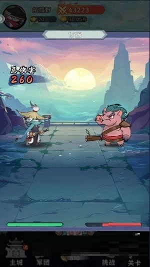 3、解锁关卡模式后,即可开启关卡挑战。该模式下采用全自动战斗机制,胜负主要取决于你的战力高低。