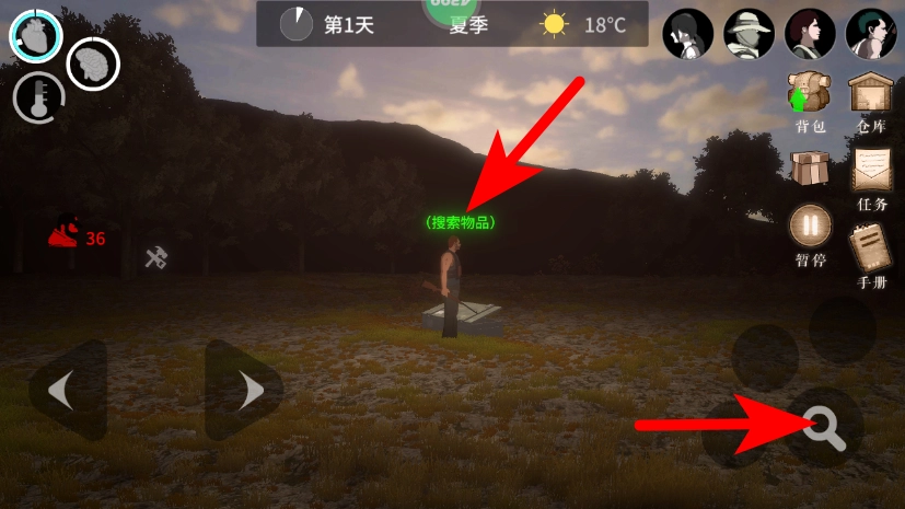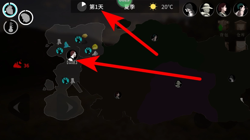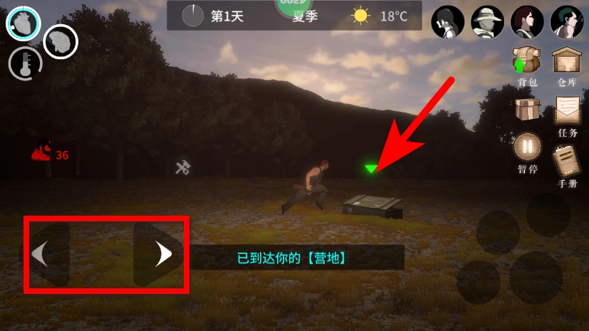 1、在营地界面点击移动按钮,到达目标区域的物资箱位置。