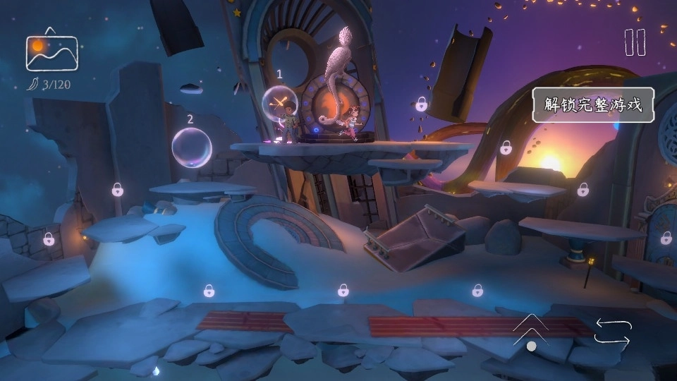 关卡中滑动场景块解谜的机制,是《双子迷途2》标志性的核心玩法,结合压力开关、水门、可破坏的穹顶、电梯、升降机等丰富的谜题机关,带来了松弛有度的游玩节奏。绝不重复的谜题,更是让你能够保持十足的兴趣和新鲜感。