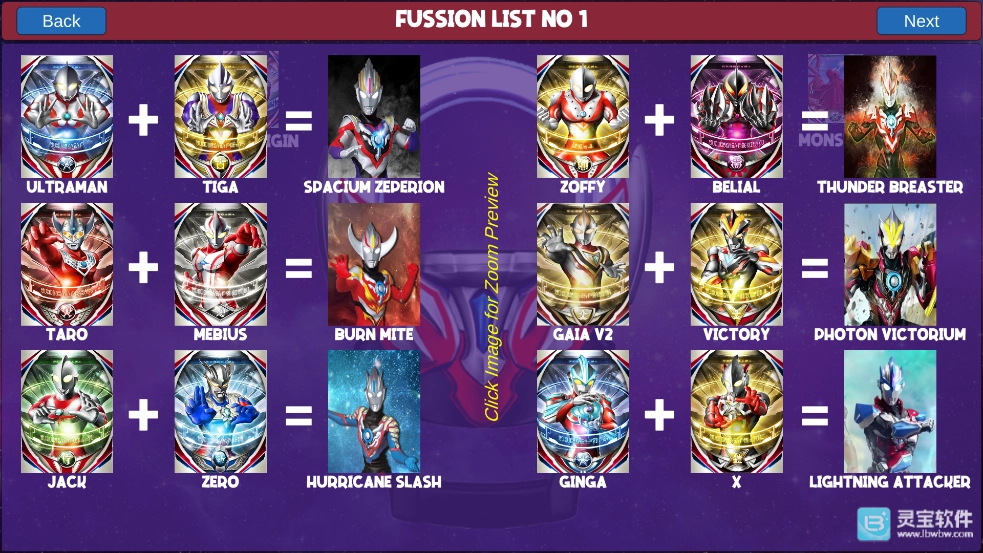 可以看到有很多页的融合组合,玩家可以根据自己的喜好来融合出想要的奥特曼