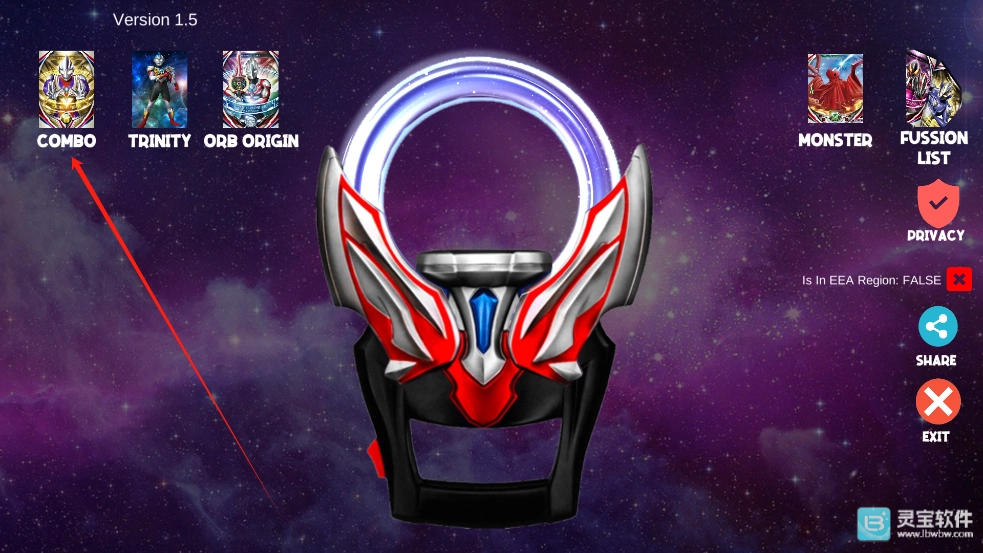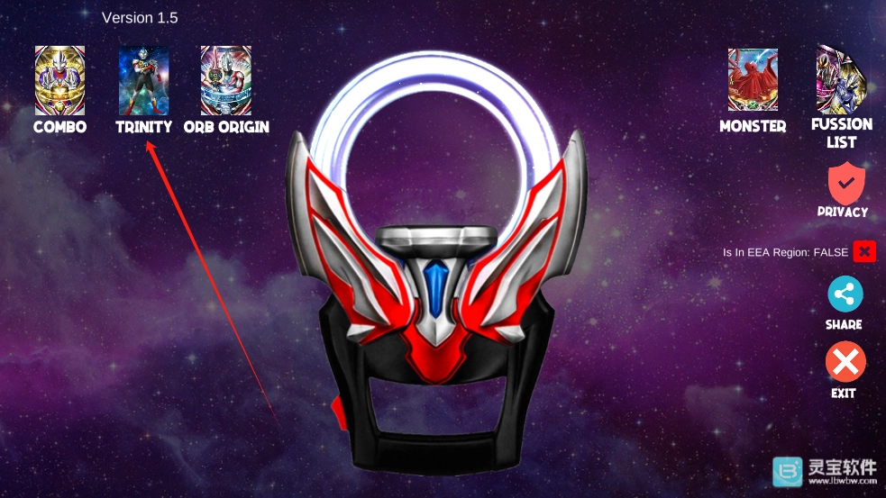 1、打开欧布圆环模拟器中文版,点击屏幕中间的变身器;