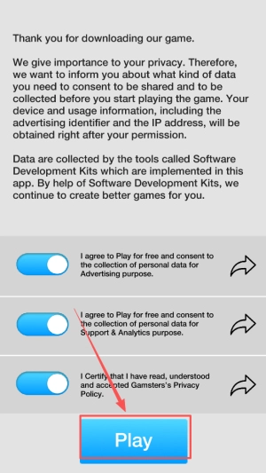 1.启动游戏:在主界面阅读并同意隐私条款后,点击“Play”按钮进入主菜单。