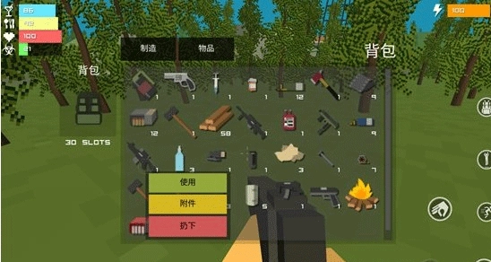 在军事基地里找到手电、把柄这类武器配件后,我们点击背包里的武器,就能看到下方弹出“附件”选项。