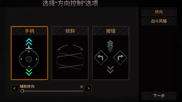 您可以根据喜好挑选方向操控的方式,比如用手柄操作、通过倾斜设备来控制,或者选择按钮模式。在界面底部还能找到辅助转向的设置选项,开启这个功能后,车辆在赛道转弯时会自动完成转向动作,但需要留意的是,这个功能并不能帮助车辆避开行驶过程中遇到的障碍物。