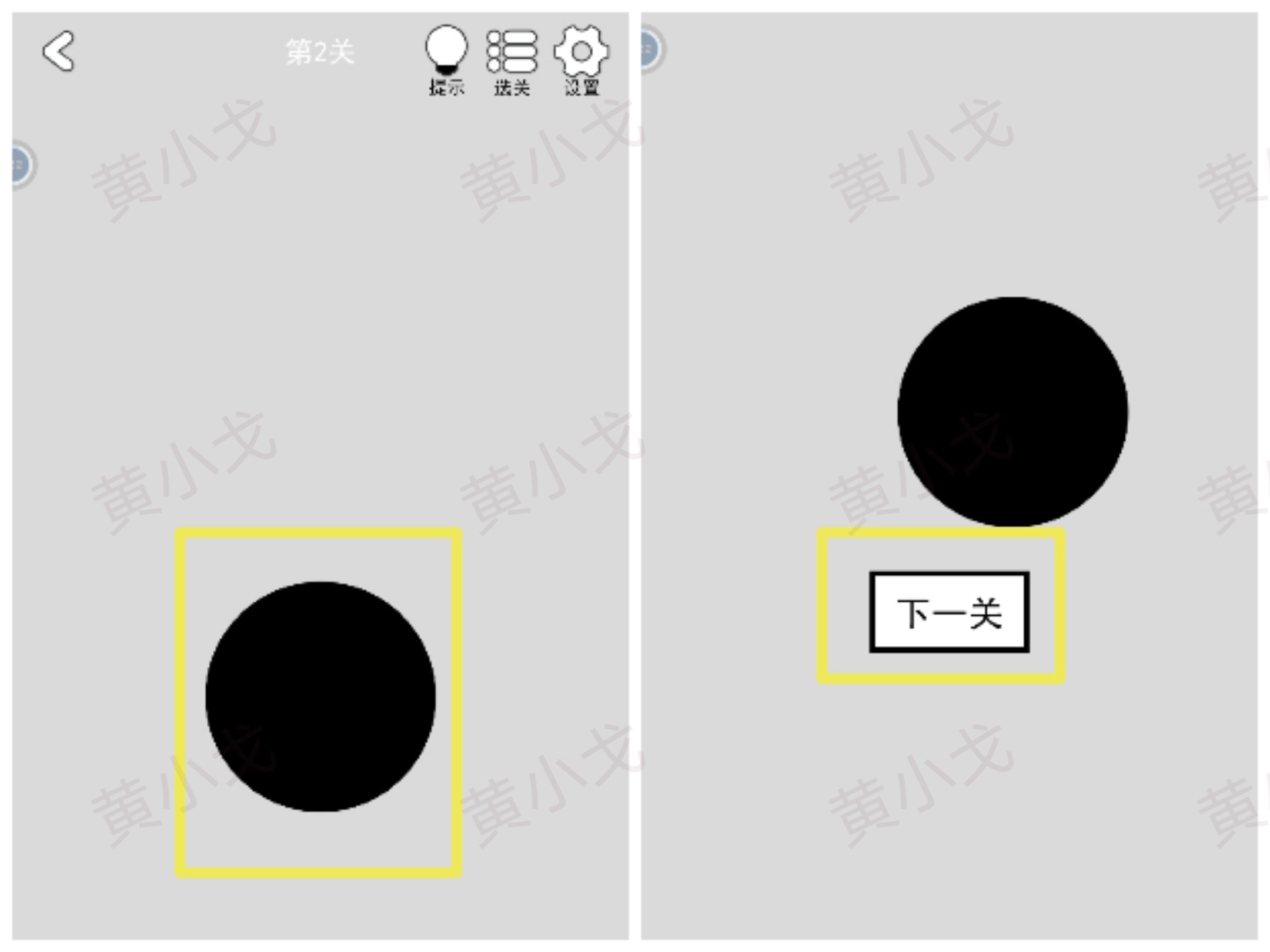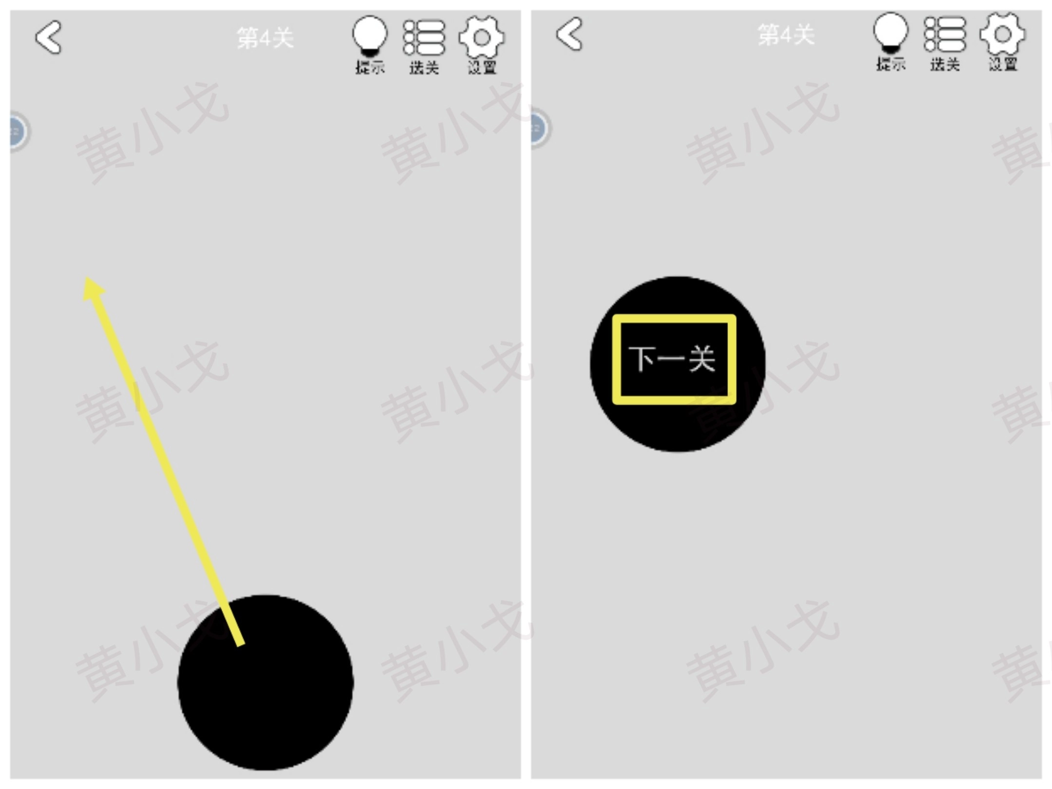 移开黑色的圆圈,点击下一关按钮