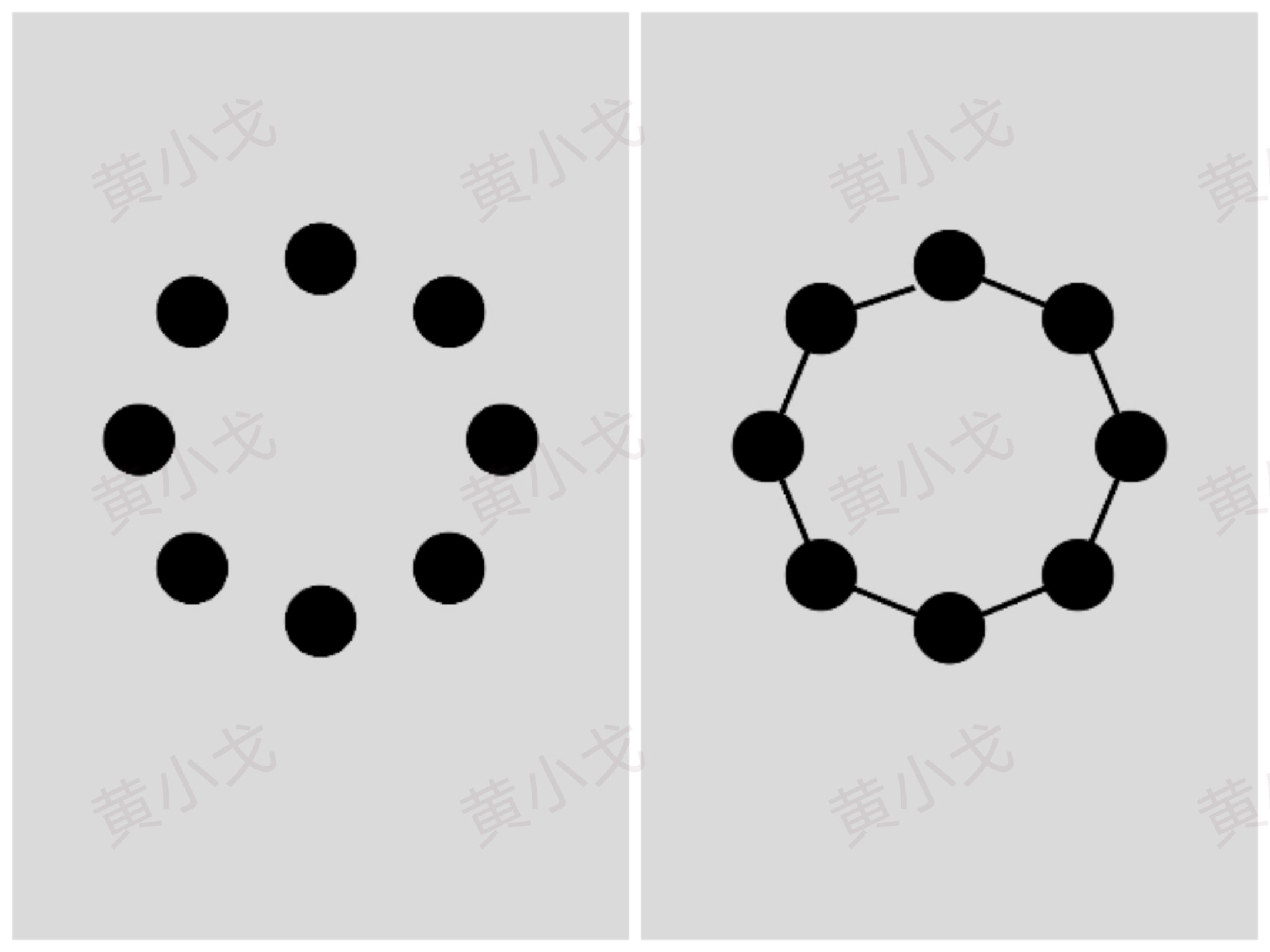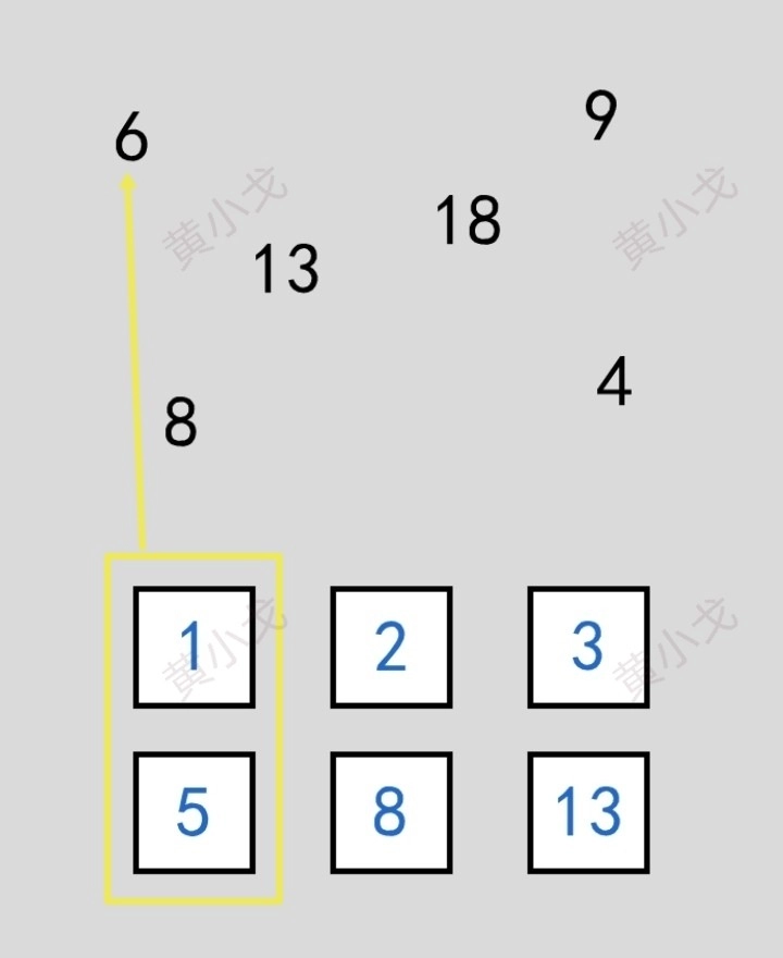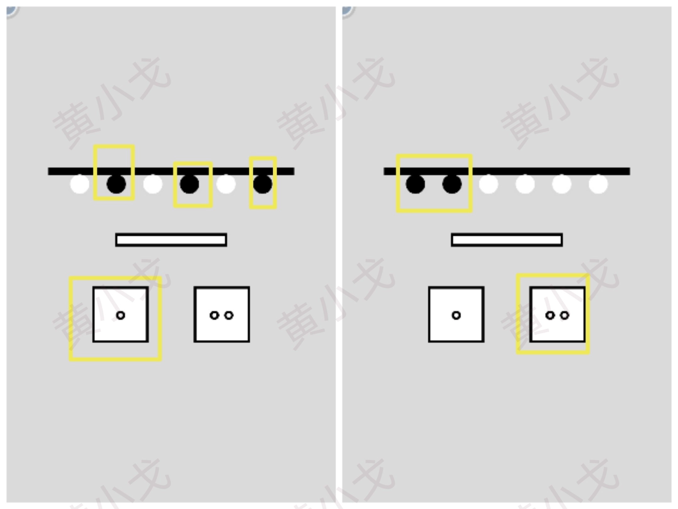 方框上的圆点数对应圆旁边的圆点数