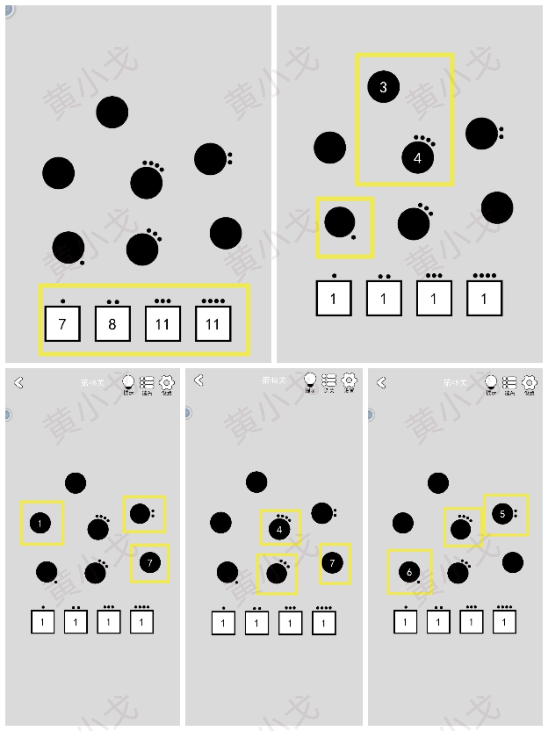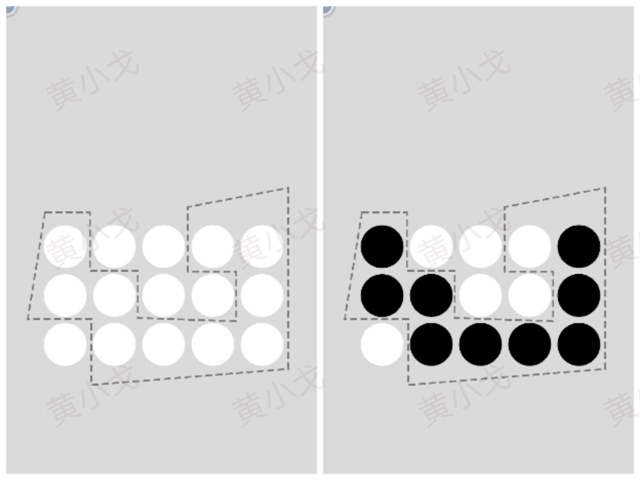 把虚线区域里的圆圈变黑,点击下一关按钮
