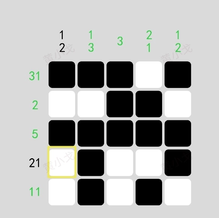 规则:数字表示所在行或列连续黑格数量