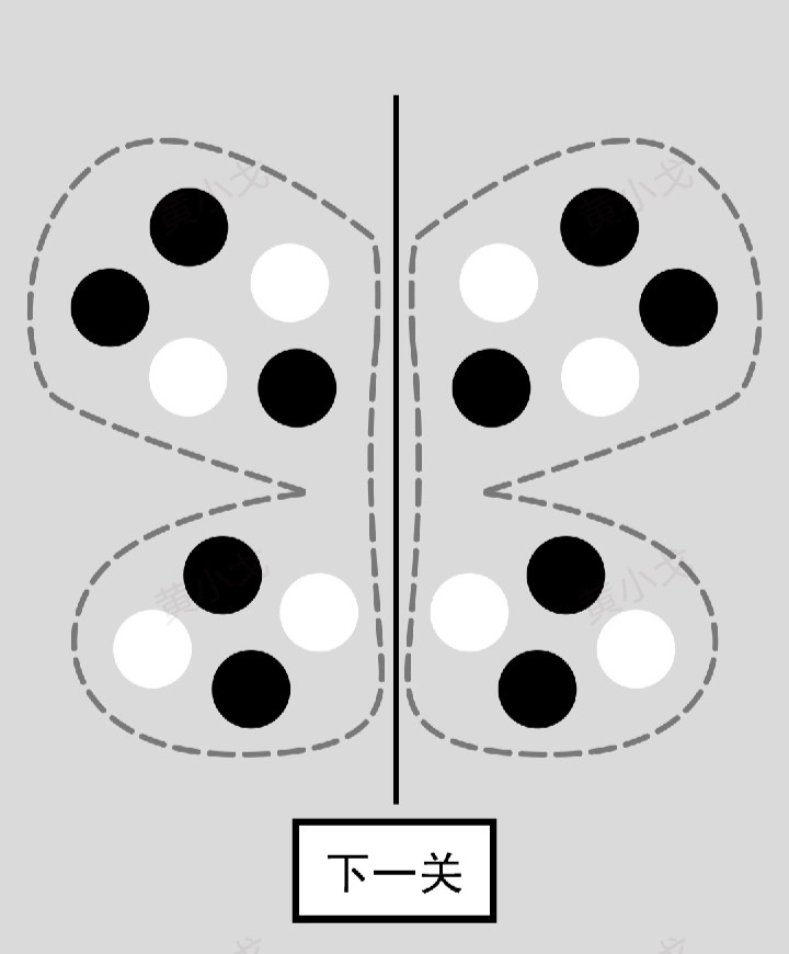 将蝴蝶两侧翅膀上的圆形颜色调整成一样的,然后点击下一关按钮